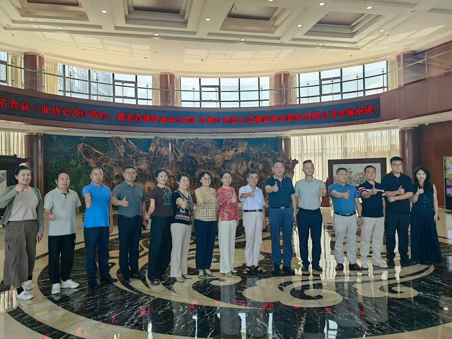 江西省食品工業協會、江西省調味品協會、湖北省調味品協會、江西煌上煌集團食品有限公司交流座談會于7月11日在江西煌上煌集團食品有限公司舉行。湖北江花調味食品股份有限公司、湖北亞一雞精、武漢嘉祺生物食品有限公司、武漢李偉明食品有限公司、武漢華中味業、曉飛歌國際有限公司、中鹽新干鹽化有限公司、湖北武漢立萌貿易有限公司等10家食品企業參加了座談。